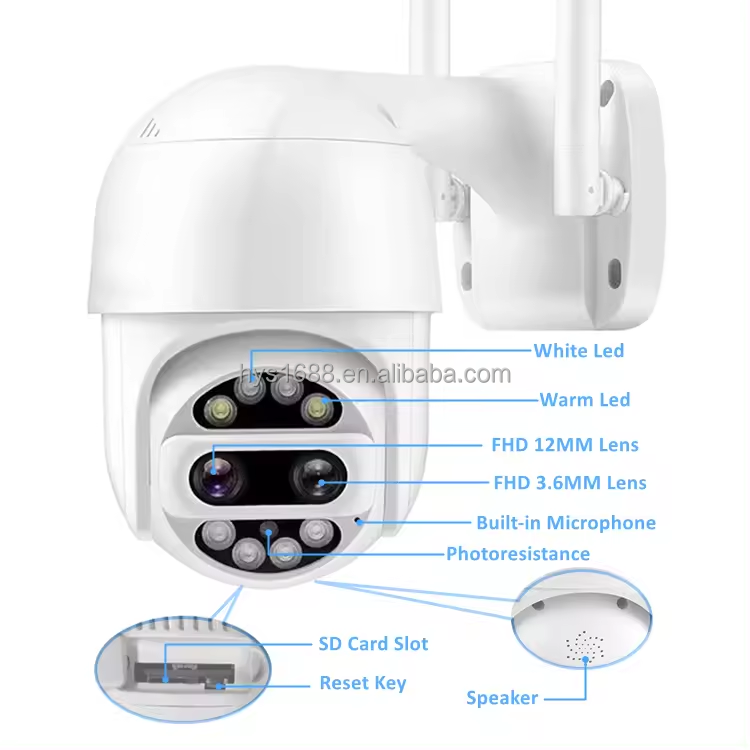 Precio de fábrica Nuevo modelo A todo color 4MP Icsee 4MP 10X Doble lente PTZ A todo color Wifi Seguridad inteligente Icsee Cámara inalámbrica