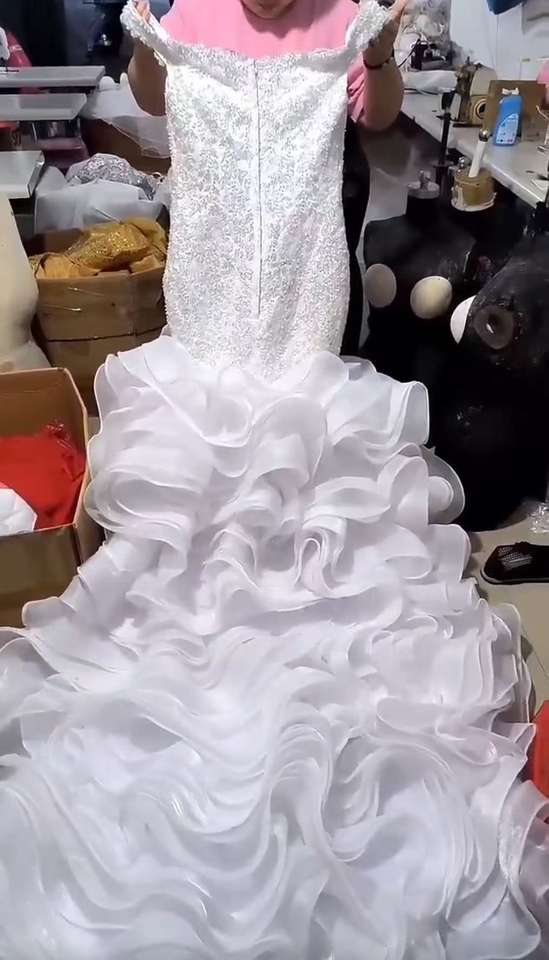 Precio de fábrica Nuevo estilo Vestido de novia con volantes Lujo Sexy Sin espalda Tren largo Brillante Blingbling Vestidos de encaje con cuentas