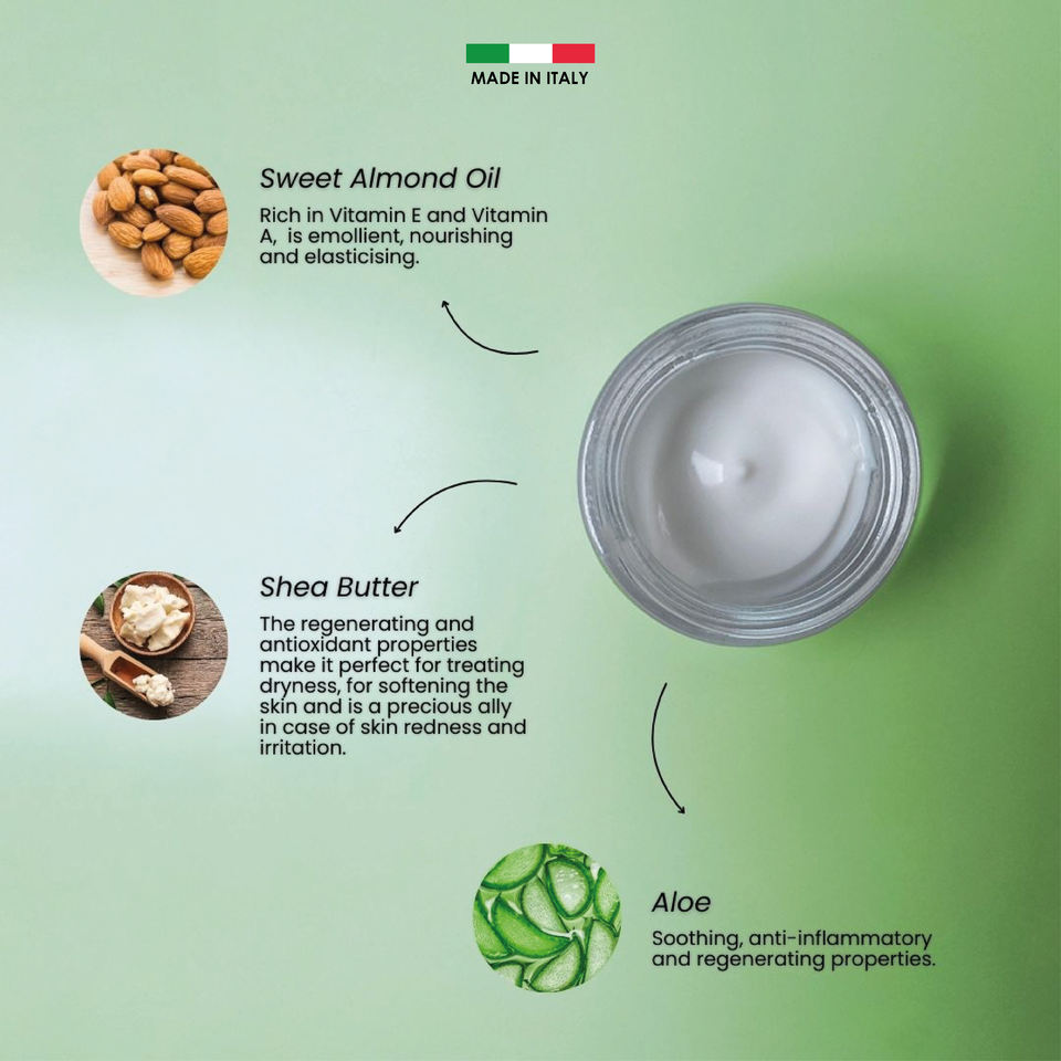 Aloe barbadensis leaf extract, almond oil, karité shea butterIngrediente principal