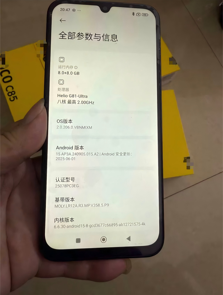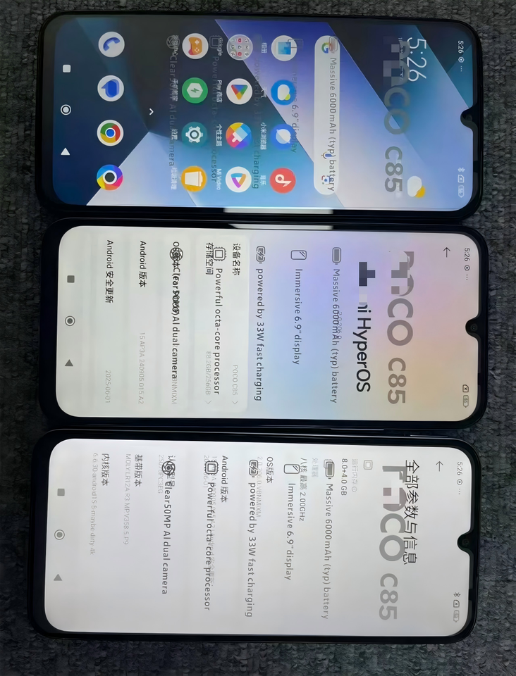 Precio de Fábrica POCO C85 Octa Core 6GB+128GB 8+256GB 6.9" AMOLED 120Hz 50MP Batería de 6000mAh Huella Dactilar Lateral NFC CDMA LTE Francés