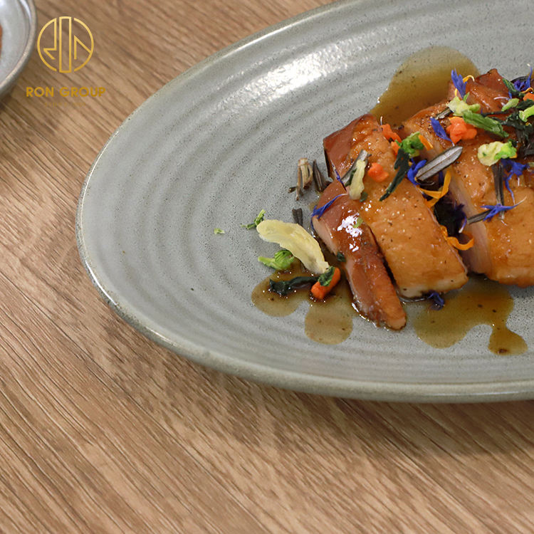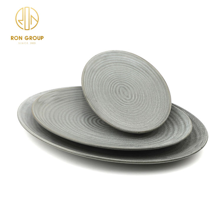 Vajilla de porcelana a precio de fábrica, plato de servicio de comida ovalado gris de 10/12/14 pulgadas para Hotel, restaurante, cubiertos de cena comercial