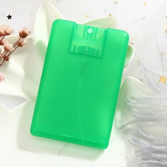 Precio de fábrica: Pulverizador portátil de 20ml de plástico PP para desinfectante de manos, tamaño de viaje, tipo tarjeta de crédito, con bomba pulverizadora y serigrafía.