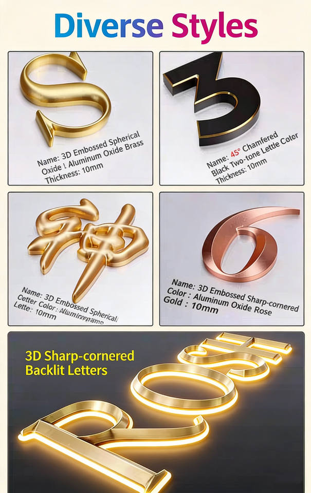 Letras de PVC para Pared con Acabado Tridimensional y Pintura Horneada, Imitación de Metal, Precio de Fábrica
