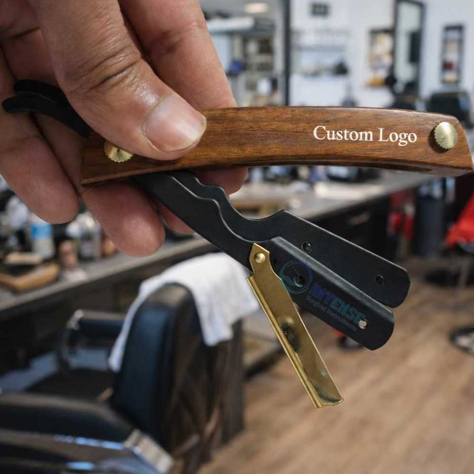 Navaja de Barbero Profesional con Mango de Madera y Hoja de Acero Inoxidable para Uso en Salón, Precio de Fábrica