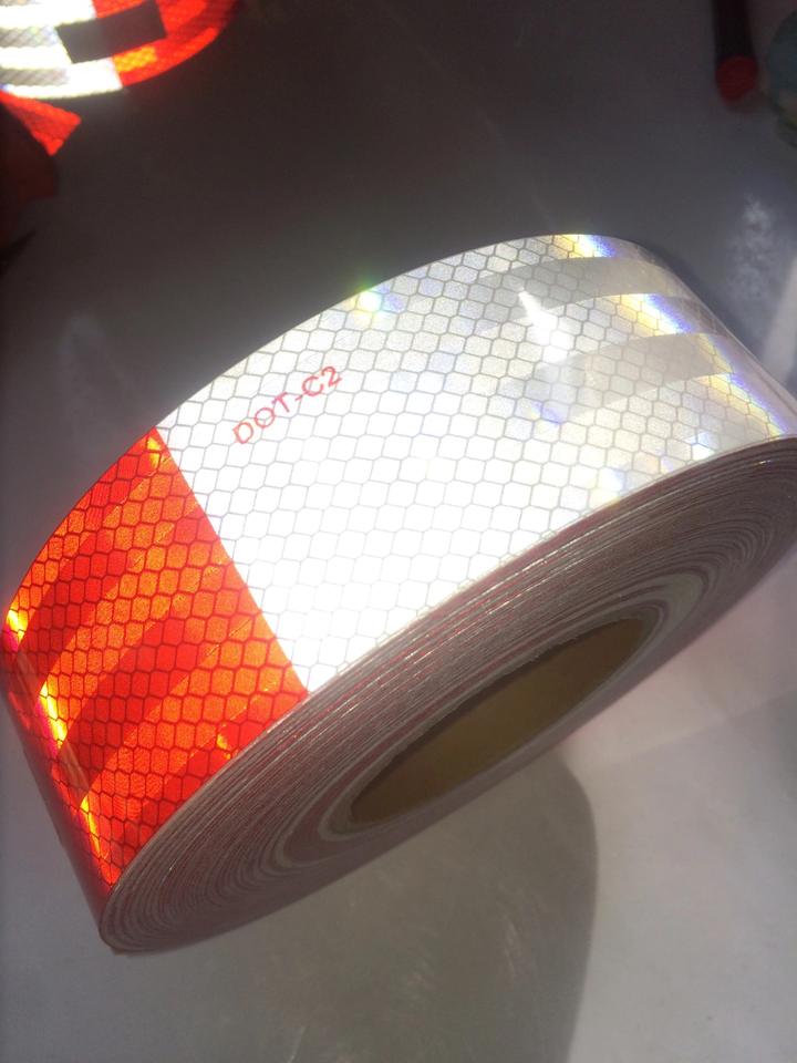 Cinta reflectante roja y blanca a precio de fábrica para camiones: adhesiva, impermeable, certificado DOT C2 para seguridad vial