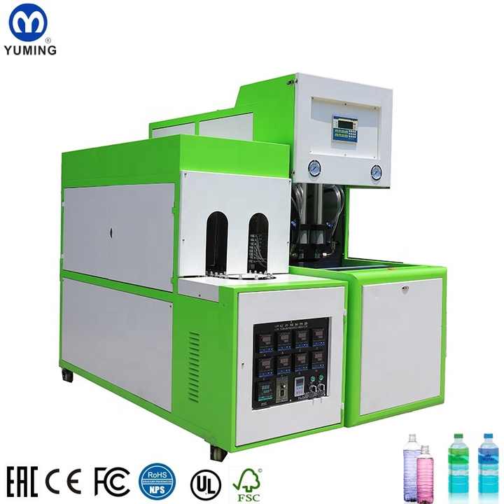 Máquina Sopladora de Botellas de PET Semiautomática de 2 Cavidades, Precio de Fábrica, para Aceite de Oliva y Agua Mineral, Certificación CE, Control por PLC, YM-2P-A