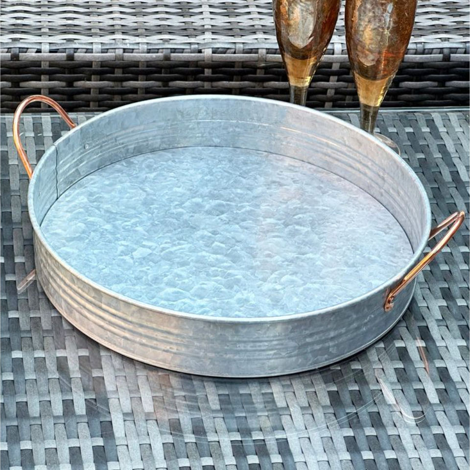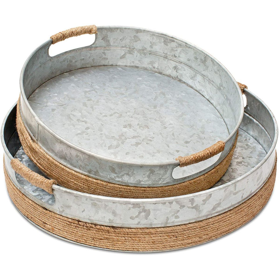Juego de 3 bandejas de servir de metal galvanizado con asas, estilo rústico, rectangulares, de hierro, para uso doméstico y en restaurantes, a precio de fábrica.