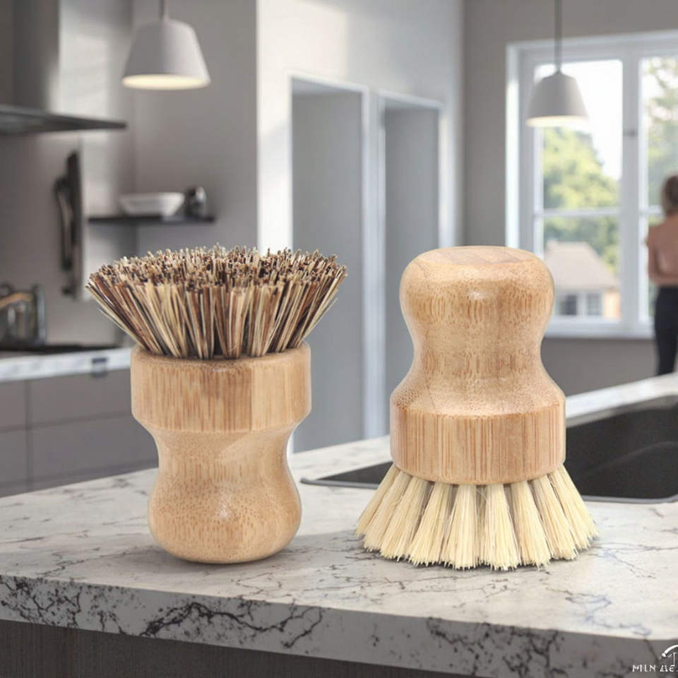 Mini cepillo de limpieza de cocina con mango de bambú y cerdas de sisal