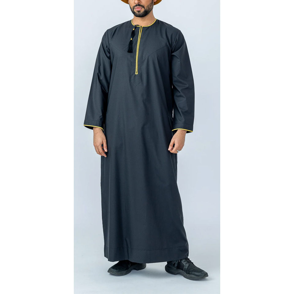 Precio de fábrica, tela suave hecha para hombre, cuello redondo, Jubba Thobe para todas las estaciones 2025, último diseño, Thobe Jubba para hombre en MOQ bajo