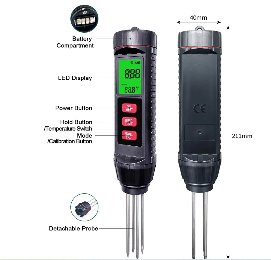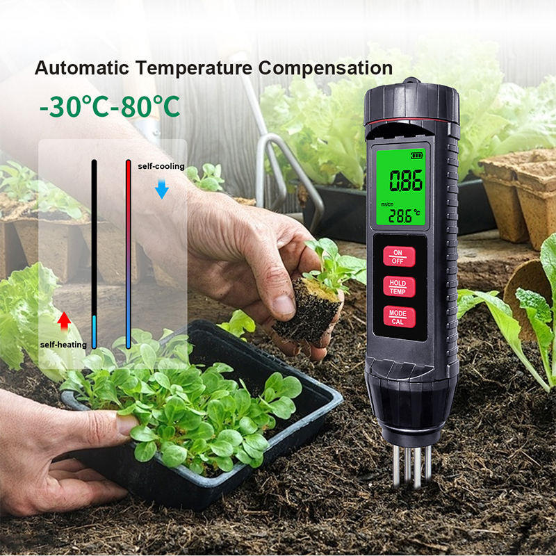 Medidor de Suelo Digital con Pantalla, Sonda de Prueba de Temperatura y CE, Precio de Fábrica, Medidor de CE de Suelo Portátil