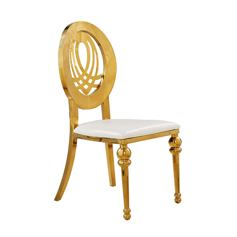 Precio de fábrica de acero inoxidable, diseño trasero redondo, banquete de Hotel dorado, silla de tierra para bodas para eventos