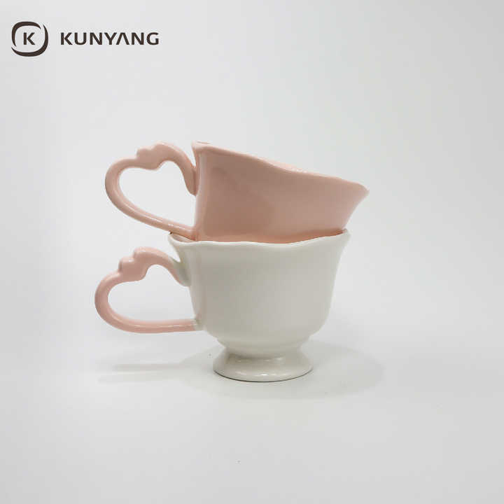 Taza de Cerámica de Gres a Precio de Fábrica, Taza Irregular con Borde Creativo y Asa de Corazón, Taza de Cerámica de Boca Ancha para el Hogar o Regalo