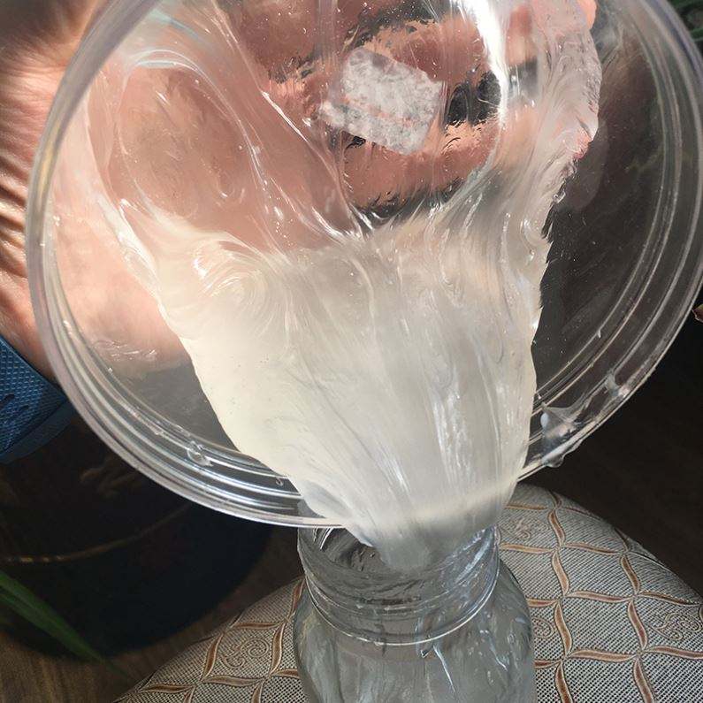 Crema blanca o amarilla clara del gel, blanco a la goma amarillentaAspecto
