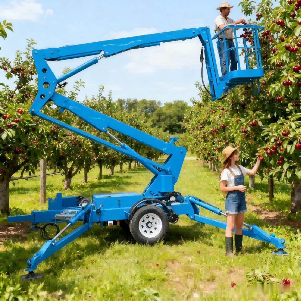 Elevador de araña de pluma remolcable a precio de fábrica, elevador portátil, remolque remolcable telescópico aéreo, elevador de recogida de cerezas en Stock