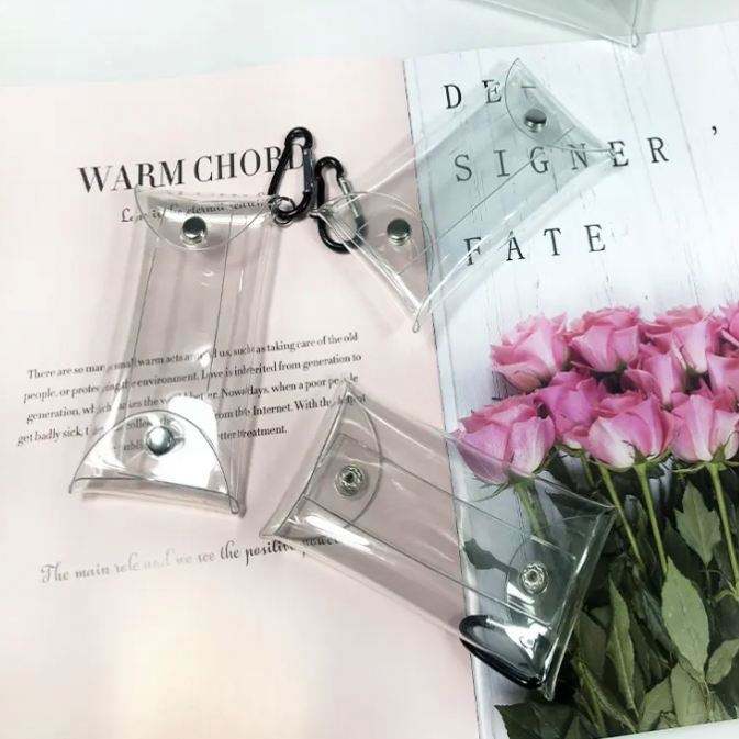 Monedero Transparente Mini de PVC con Botón a Presión y Llavero, Cartera Pequeña y Bolsa Porta Tarjetas Cuadrada, Precio de Fábrica