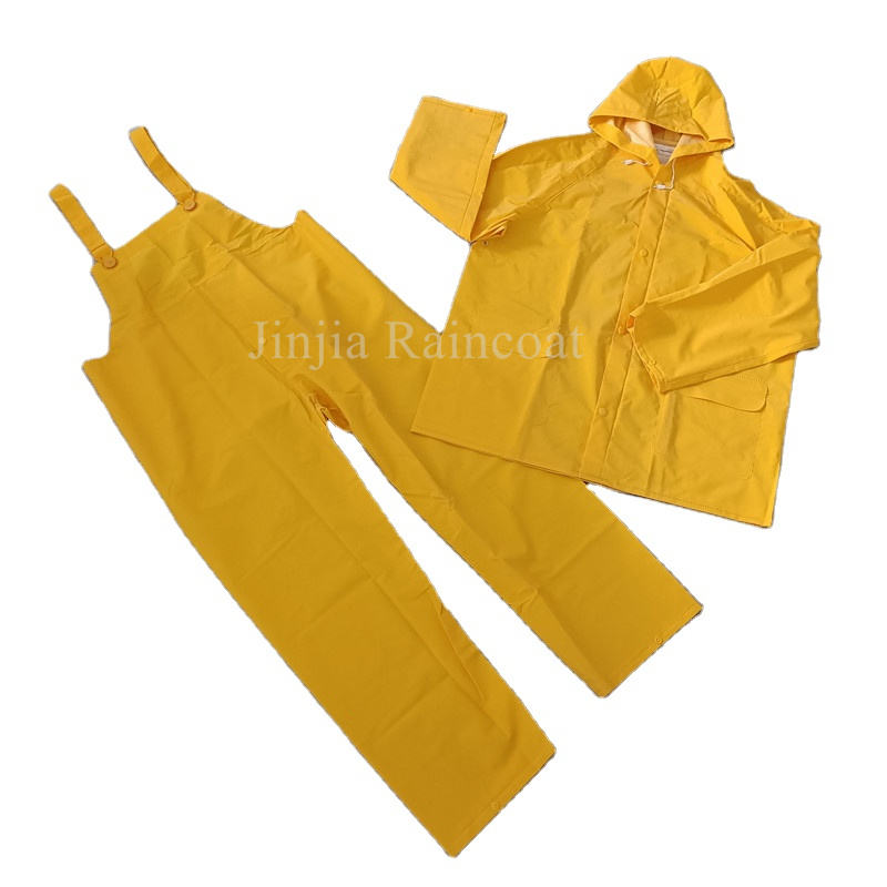 Traje de lluvia de PVC amarillo, chaqueta impermeable con pantalones tipo peto