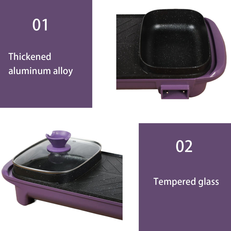Característica:Superficie de cocción antiadherente plana abierta de 180 grados, Control de temperatura ajustable con pantalla digital, BBQ de la familia, Antiadherente, Limpieza fácil, Multi-function Selection