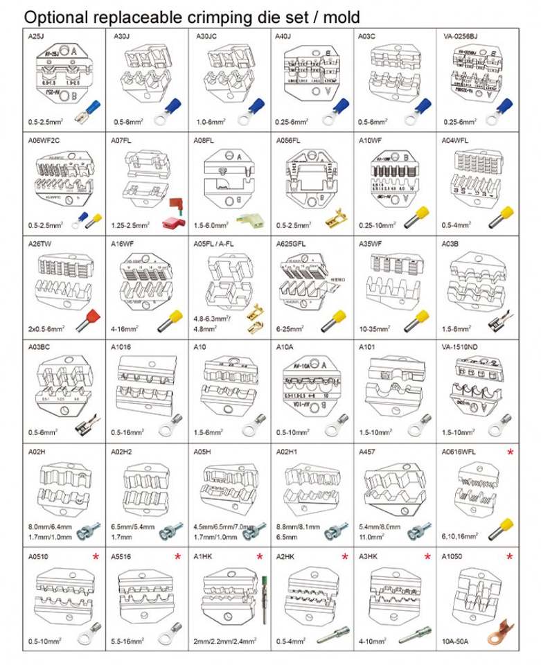 Terminales preaislados, terminales no aislados.Terminal aplicable