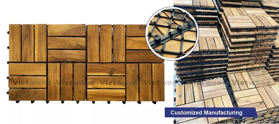 Precio de fábrica Azulejos de suelo de cubierta entrelazados de madera, Azulejos de suelo de madera de acacia, Cubierta al aire libre Uso para todo tipo de clima