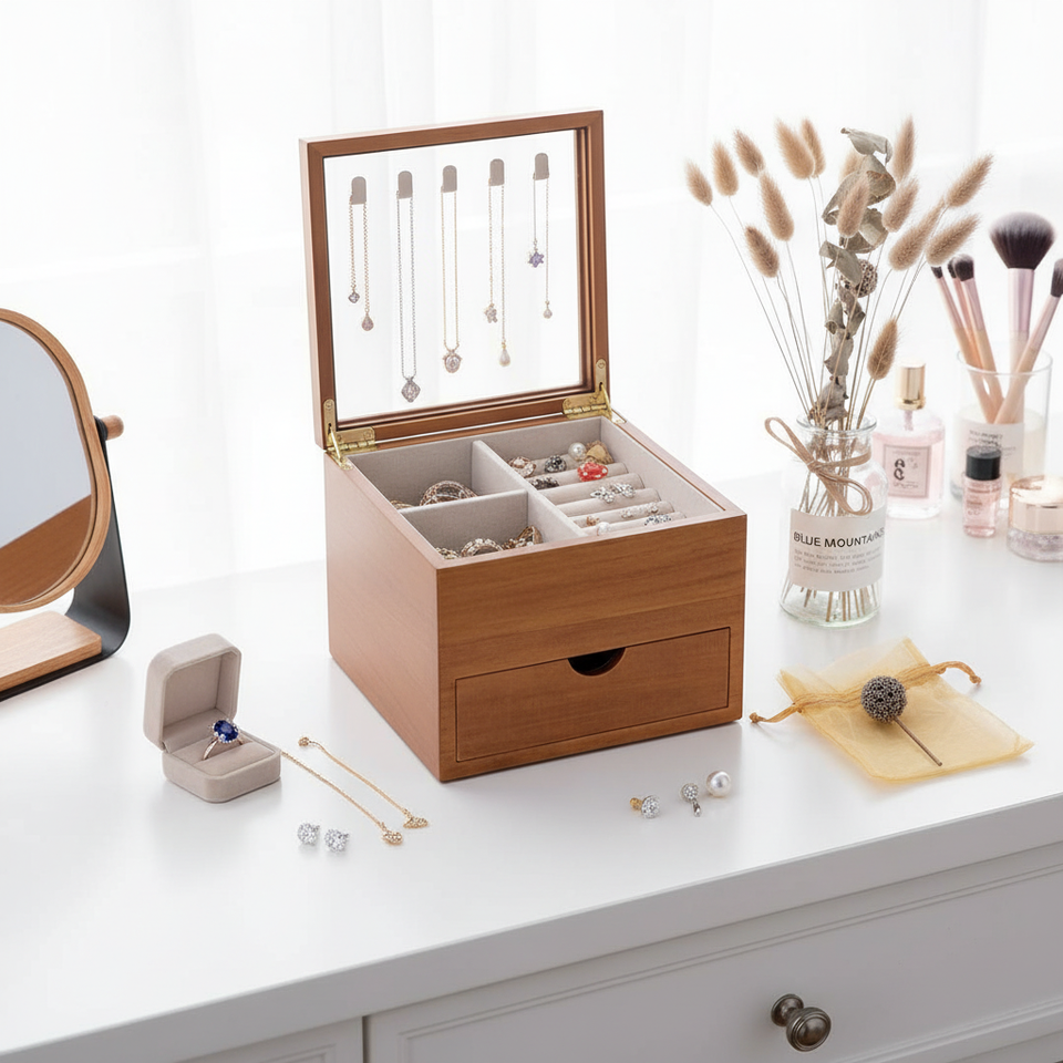 Caja Organizadora de Madera Rectangular Moderna con Logotipo Personalizado, Hecha a Mano, para Oficina, Joyería, Precio de Fábrica