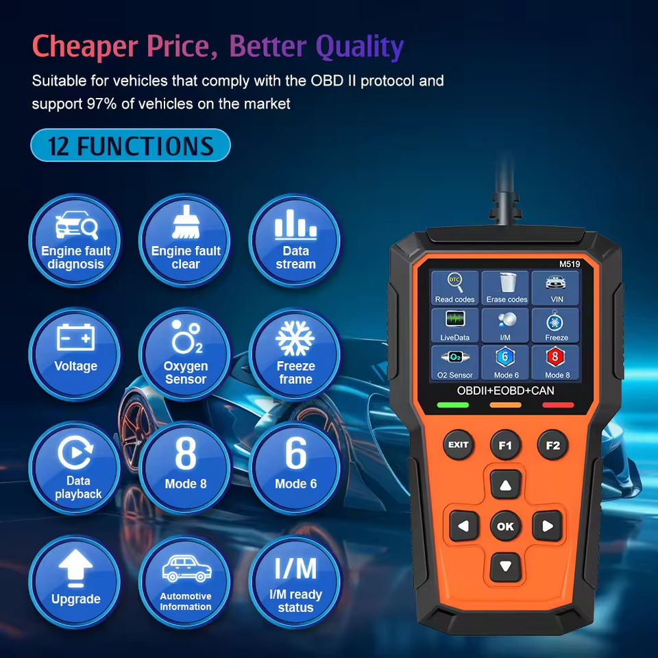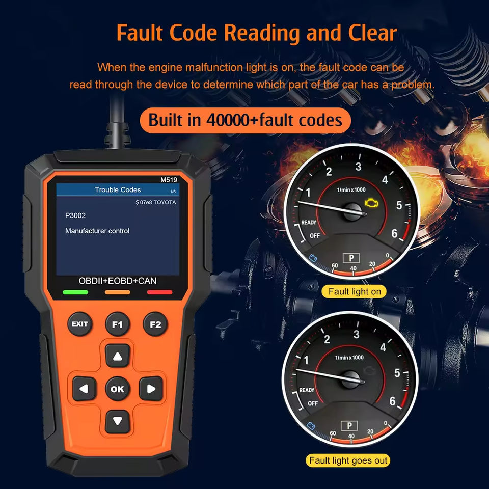 Escáner Automotriz Profesional M519 OBD2, Herramienta de Diagnóstico Automotriz Universal, Verificador de Códigos de Error del Motor, Lector EOBD Eléctrico, 1 Año de Garantía