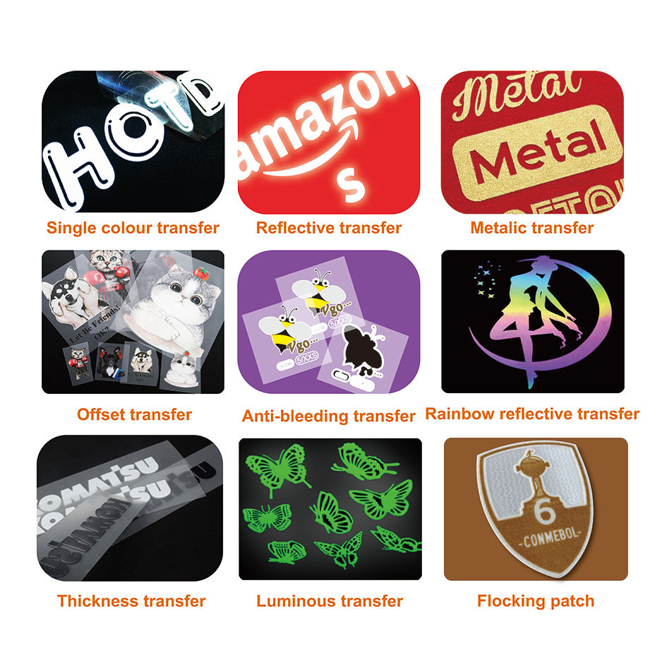 Pantalla de plastisol personalizada profesional de fábrica, impresión de transferencia de calor, DTF pegatina, venta al por mayor, Diseño de transferencia de hierro de vinilo en la ropa