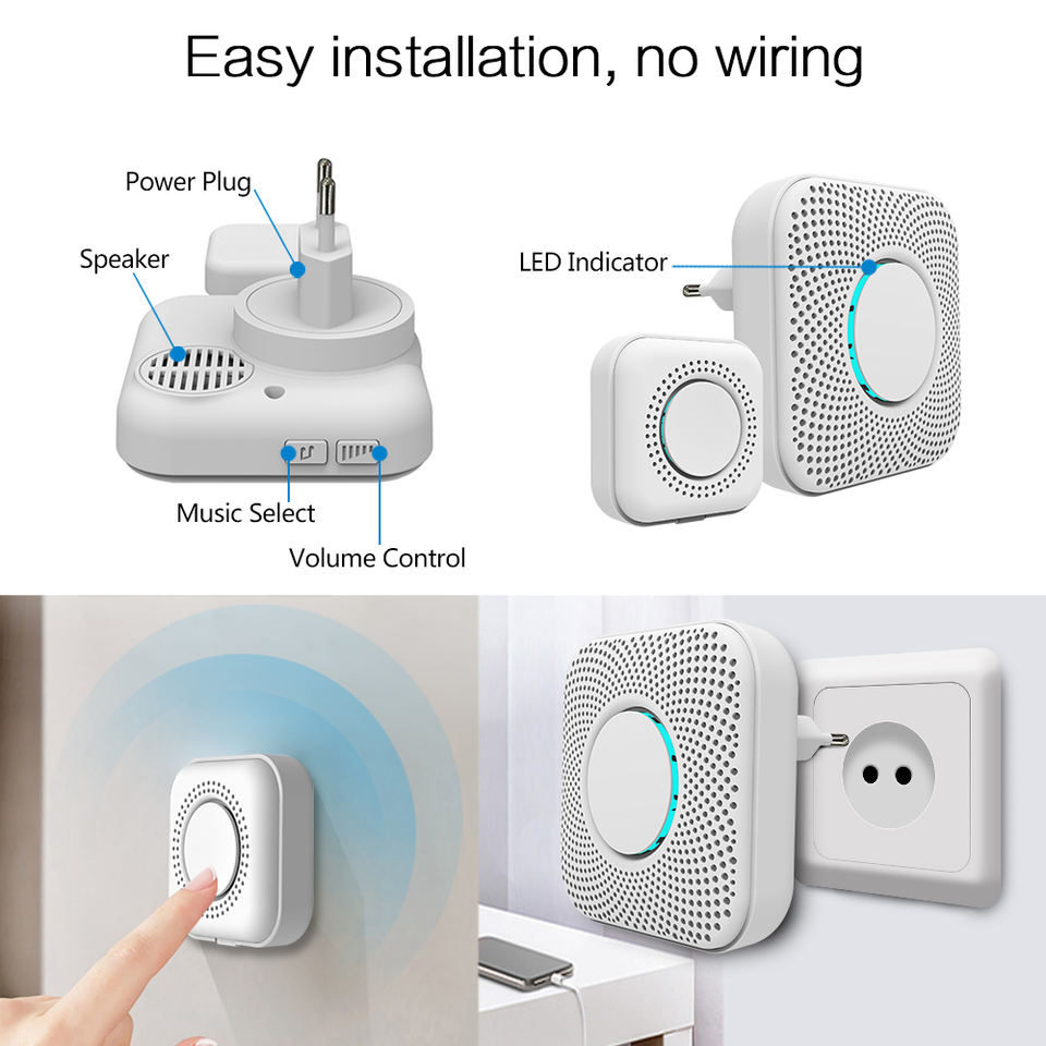 Inalámbrico 300m puerta campanas botón Casa timbreNombre del producto