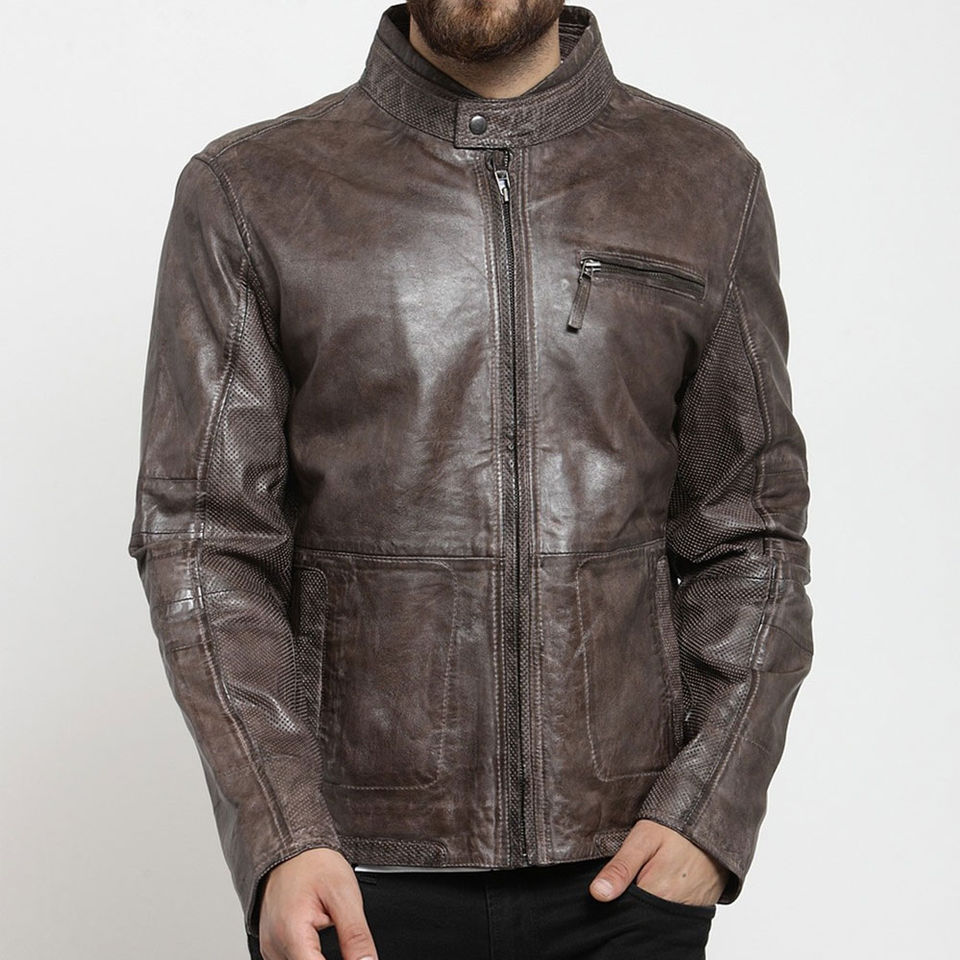 Chaqueta de cuero para hombre con diseño adecuado de fábrica, chaqueta de cuero de motorista para hombre de estilo único a precio bajo, servicio OEM