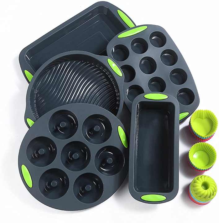 Juego de utensilios de silicona para hornear, Set de utensilios de silicona gris oscuro, antiadherente, molde para hornear pasteles, 12 tazas, cacerola para muffins, 5 uds., venta al por mayor