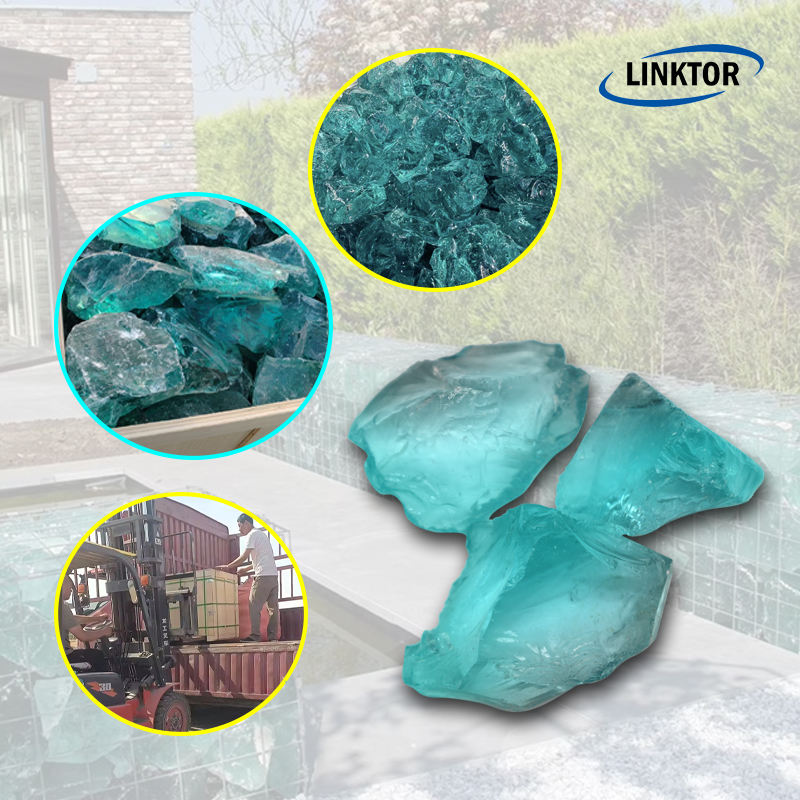 Rocas de vidrio de color natural reciclado de fábrica para paisajismo, escoria de vidrio decorativa con coloración única