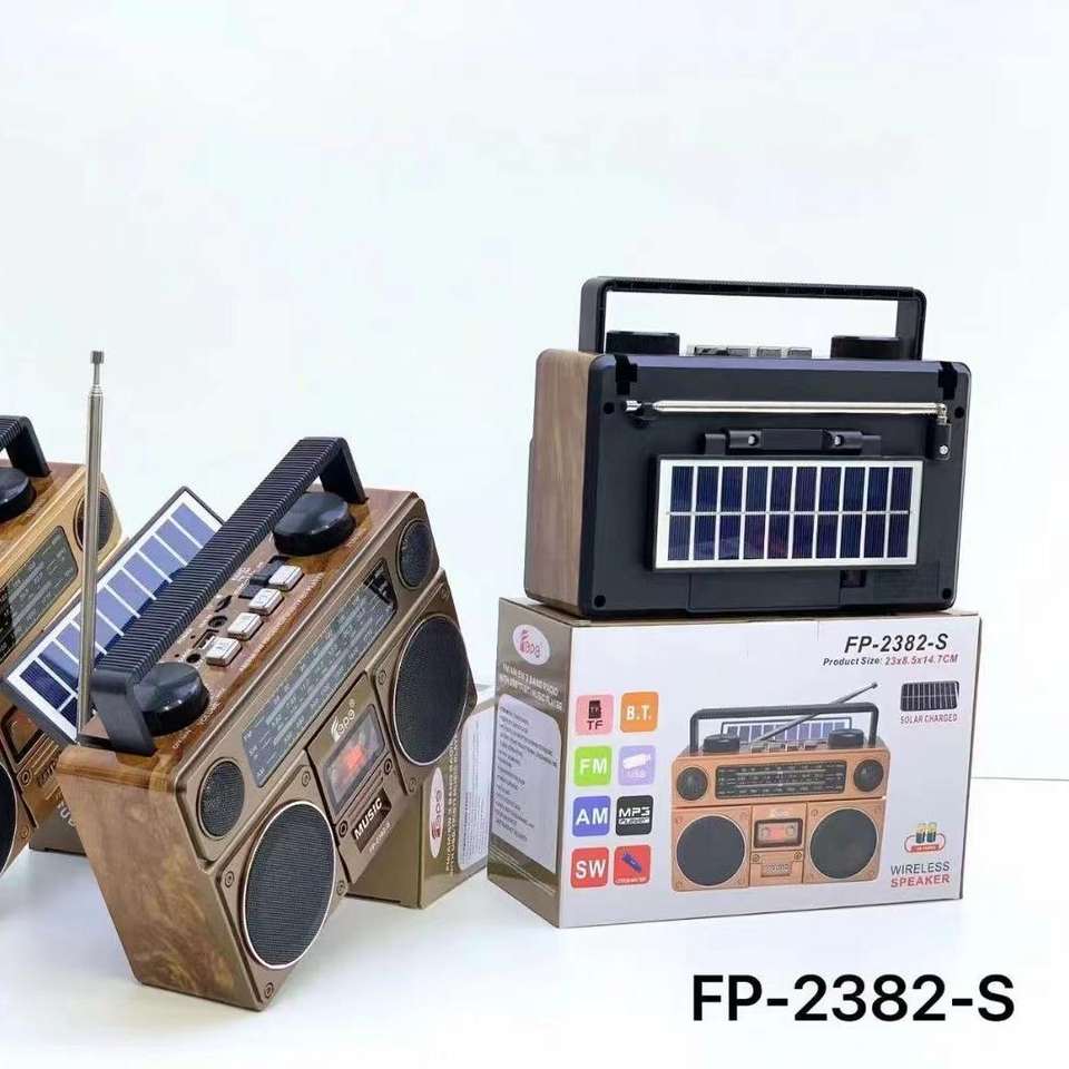 Radio Solar Retro FP-2382-S de Fábrica con Altavoz, BT5.3, Salida de 4.5W, 1200mAh, AM FM SW, 3 Bandas, Dispositivo de Audio para Fiestas al Aire Libre y en Casa