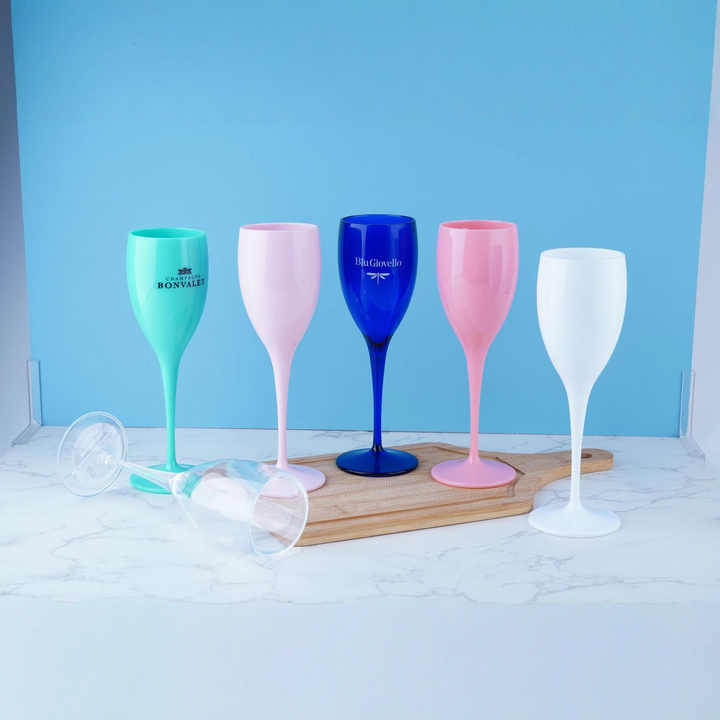 Venta de fábrica Logotipo personalizado y color Hielo Imperial Rosa Blanco Negro Plástico Ps Copa acrílica Copas de champán Copas de vidrio