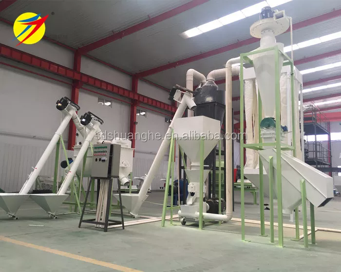 Línea contener:Molino de martillos, mezcladora, peletizadora, enfriador, cribadora, máquina empacadora