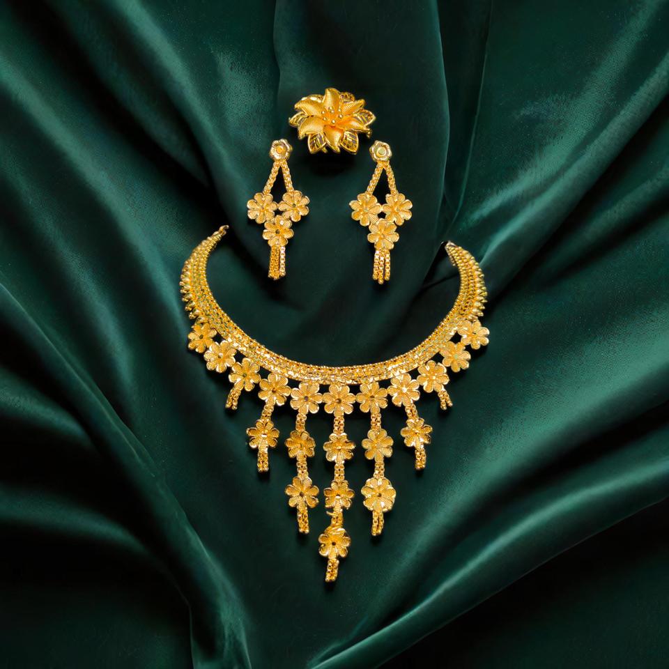 Venta de fábrica Pendientes Anillo Set con 22K Chapado en oro Collar Diseño tradicional Conjunto de joyería nupcial para la venta