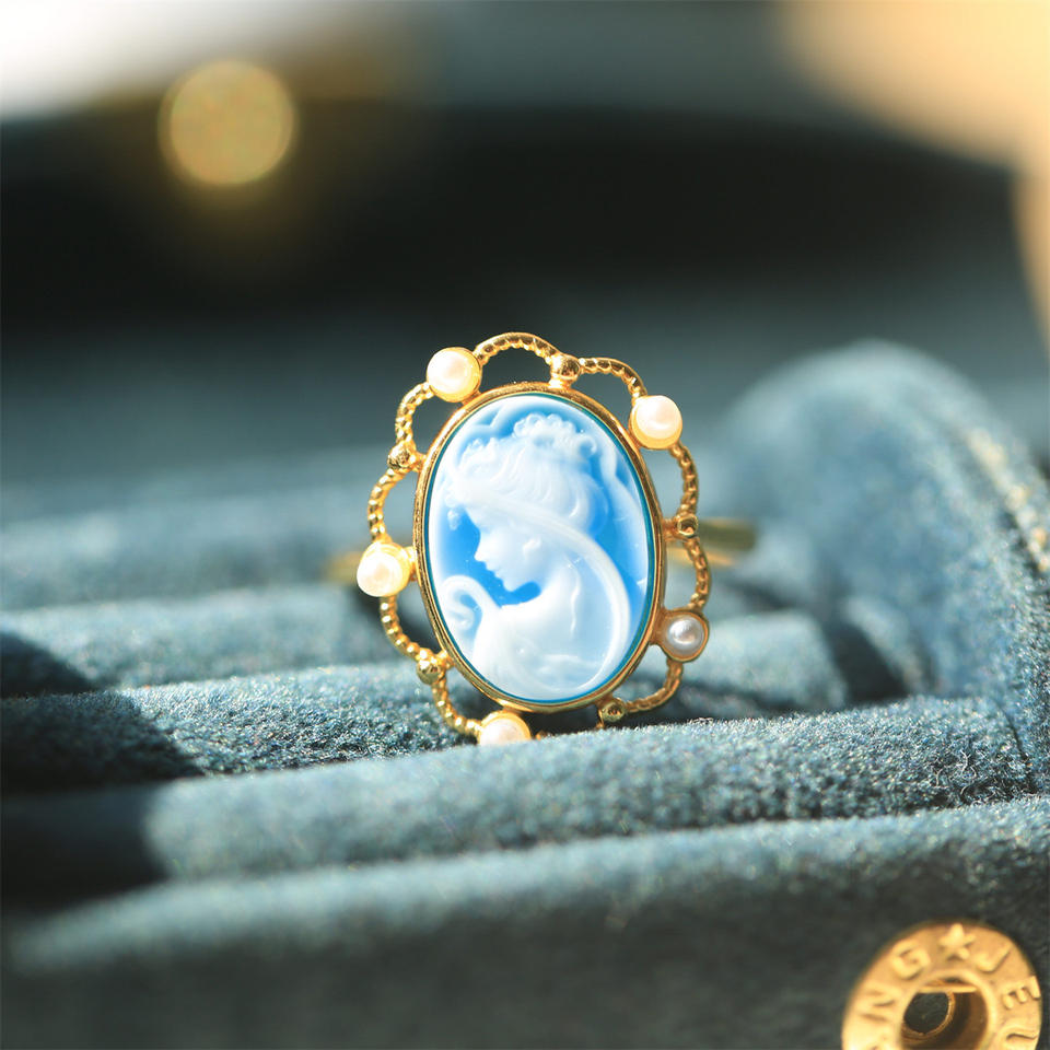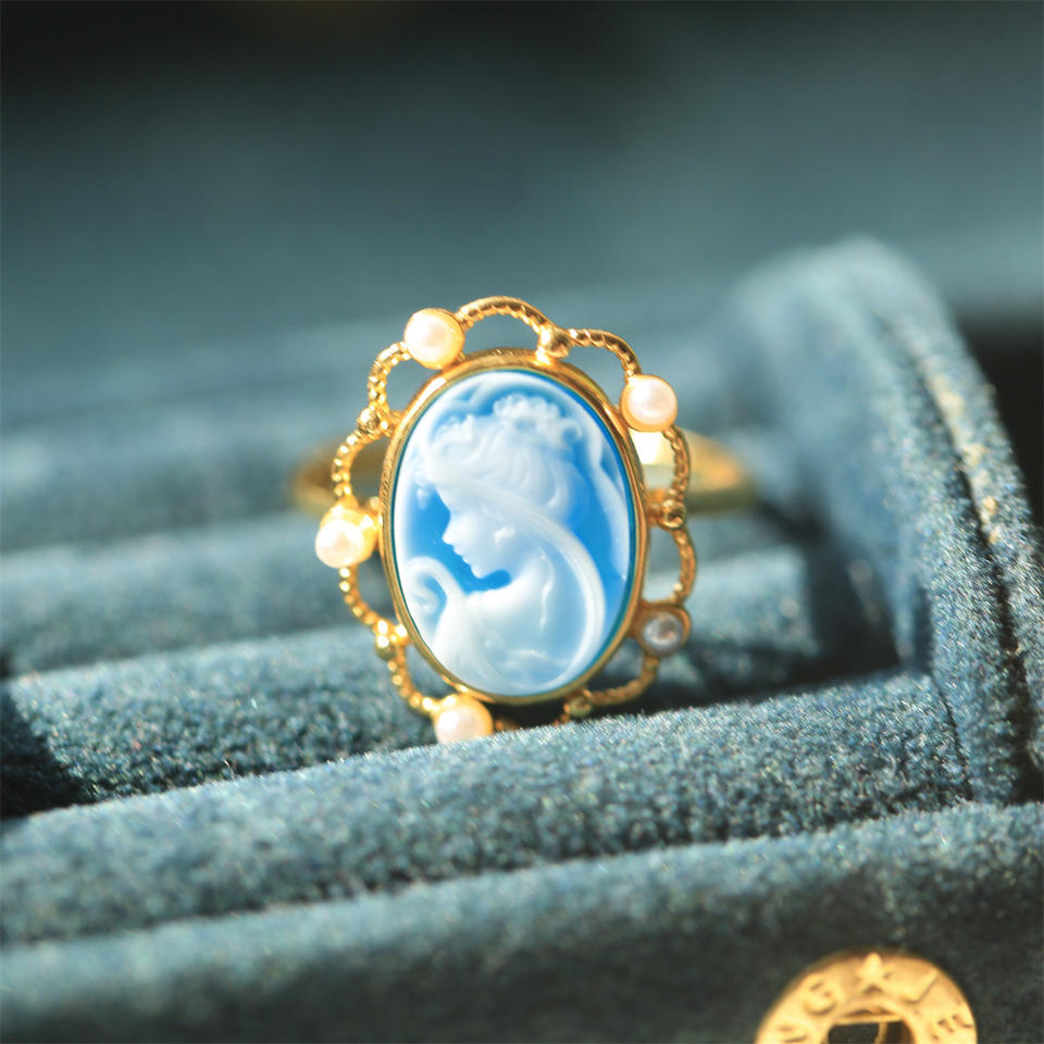 Anillo de Plata 925 con Incrustaciones de Camio en Relieve, Venta de Fábrica