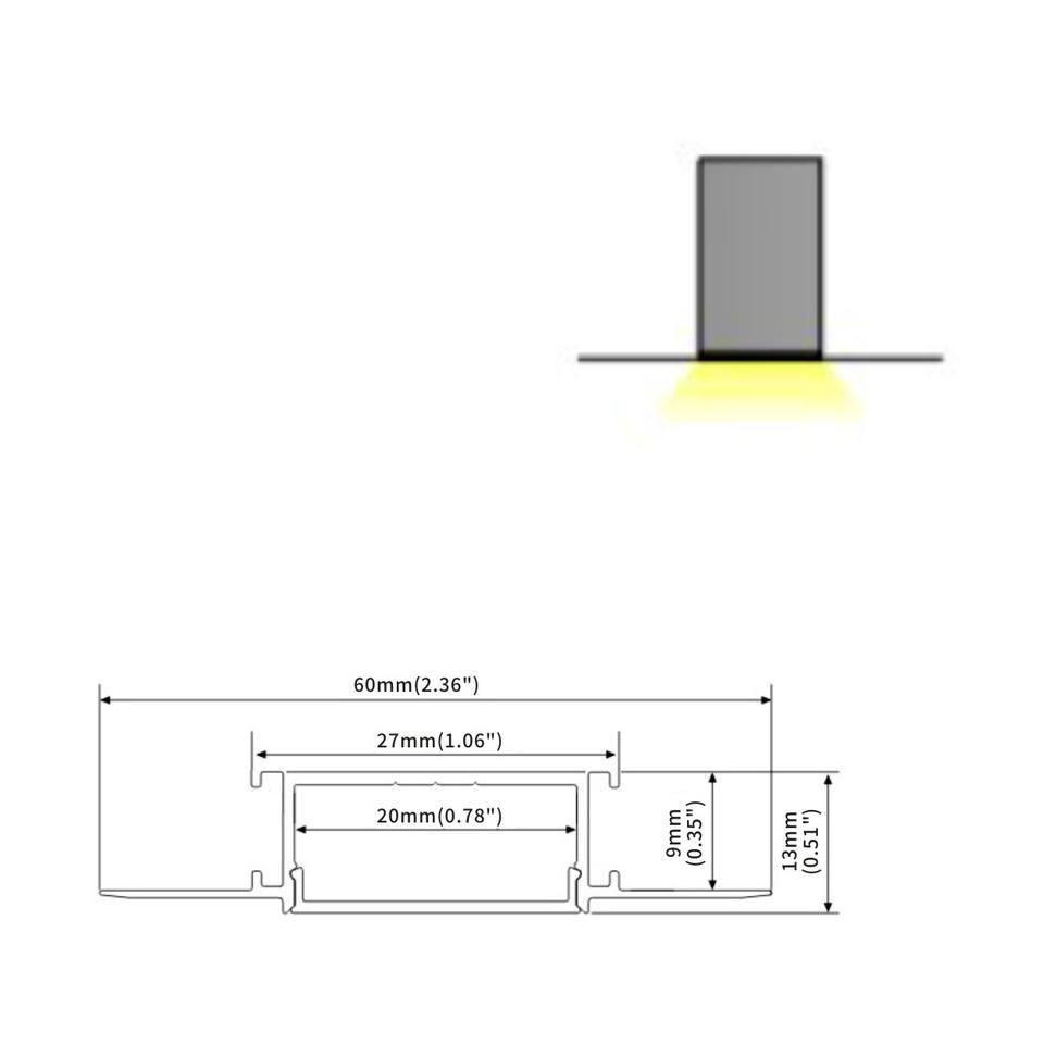 Perfil de Aluminio LED sin Marco de 6114 Longitud 61*14MM para Tira de Luz LED, Venta Directa de Fábrica, Personalizado