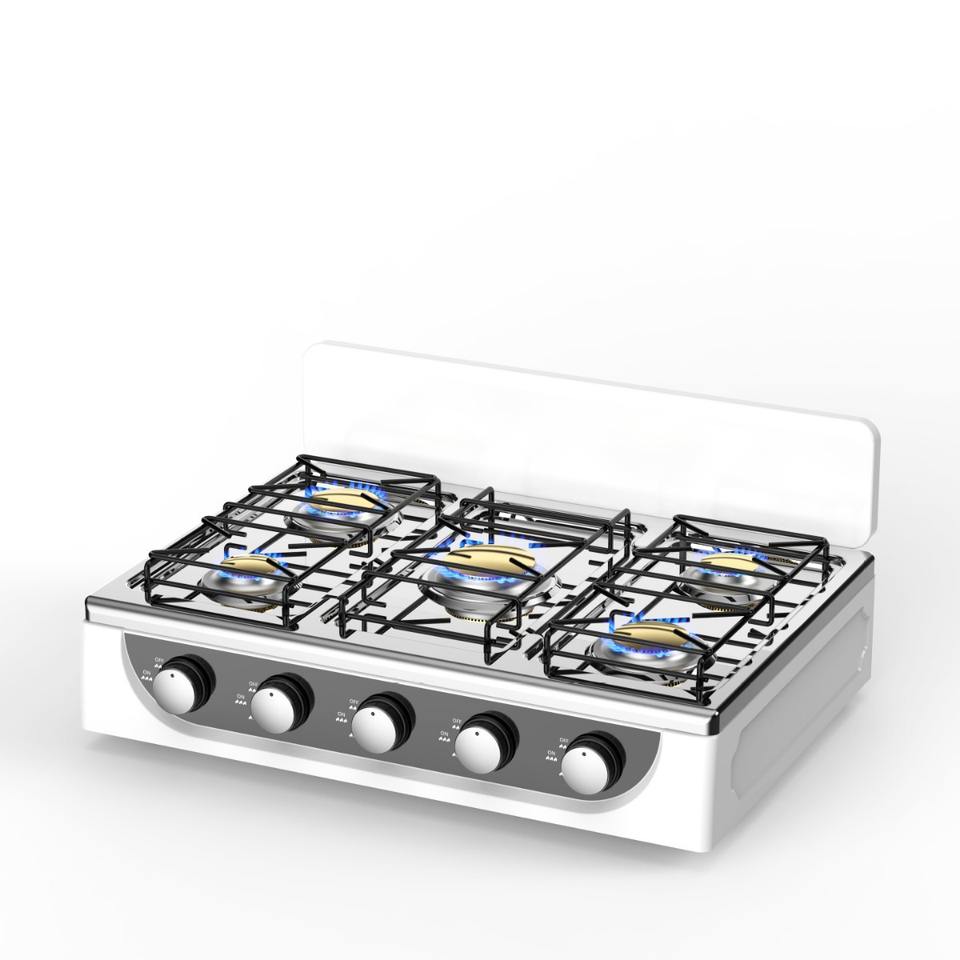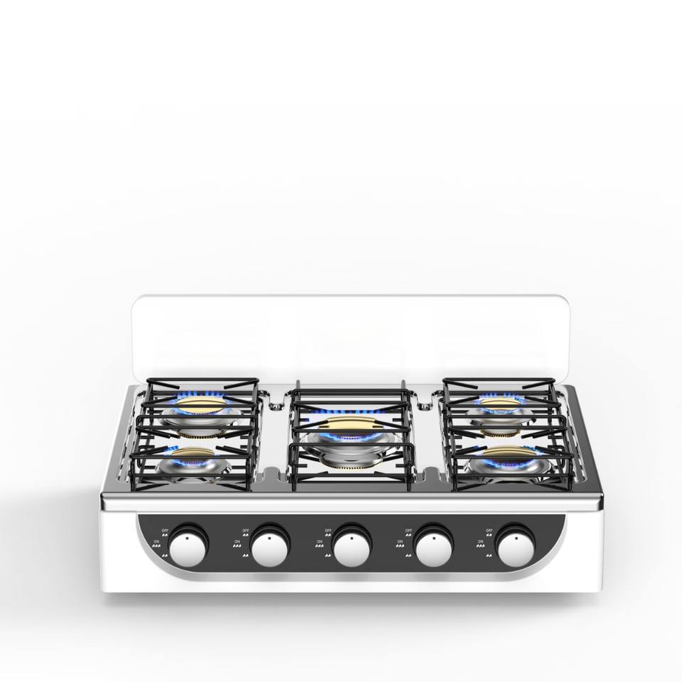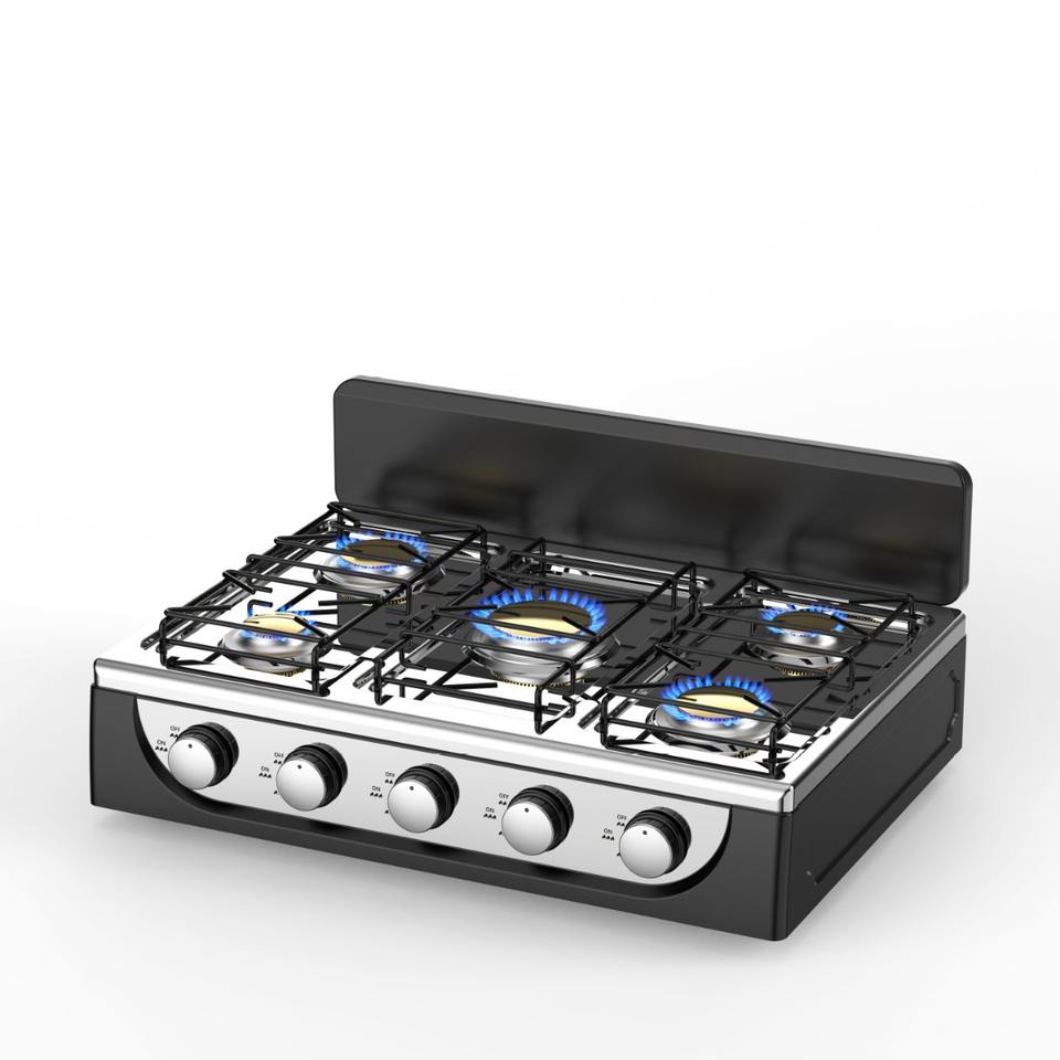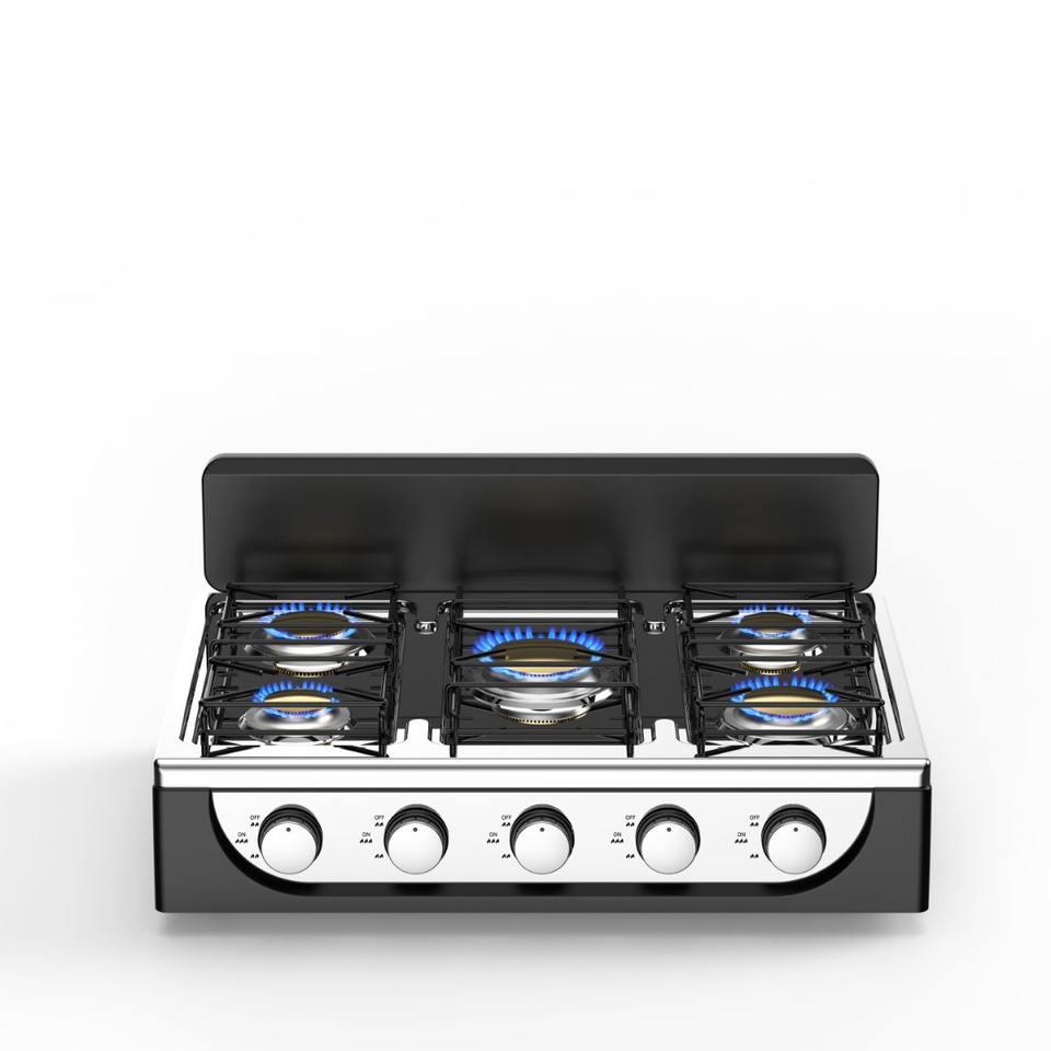 Venta de fábrica Aplicaciones de cocina Cocina de gas de acero inoxidable OEM Estufa de gas de 5 quemadores