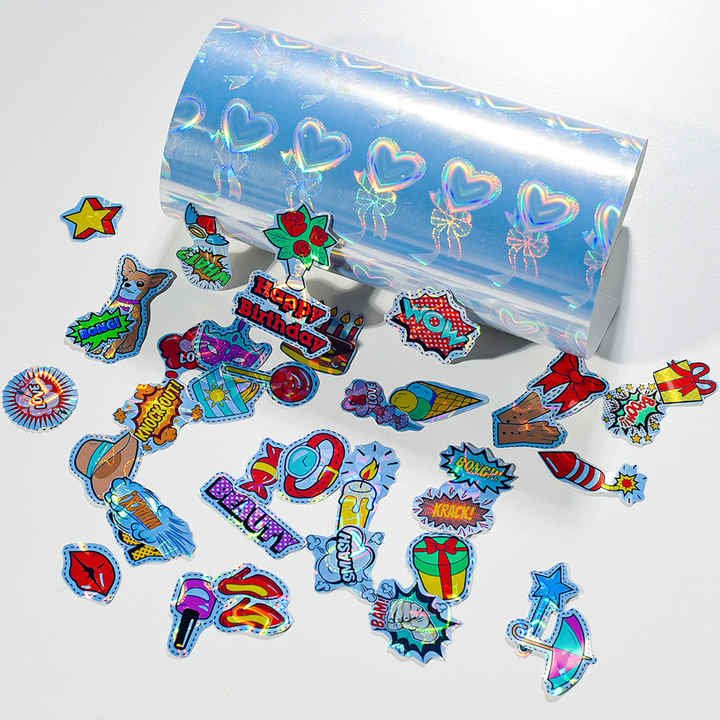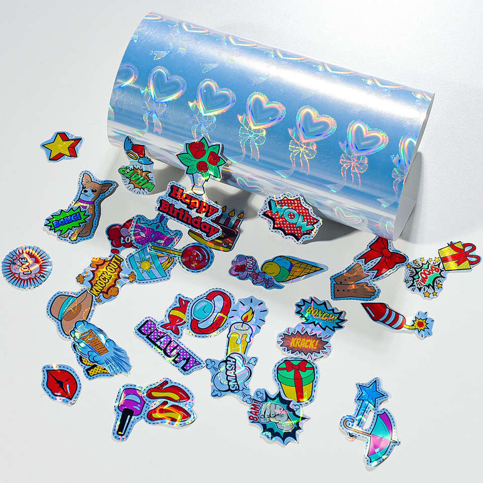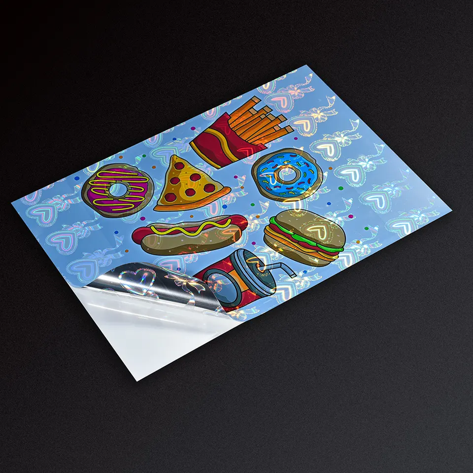 Rollo de Vinilo Holográfico Autoadhesivo de Fábrica, Etiquetas con Patrón de Amor Holográfico, Materiales para Máquina de Impresión de Inyección de Tinta