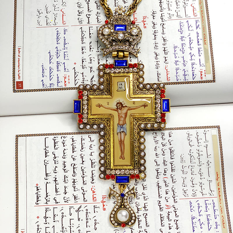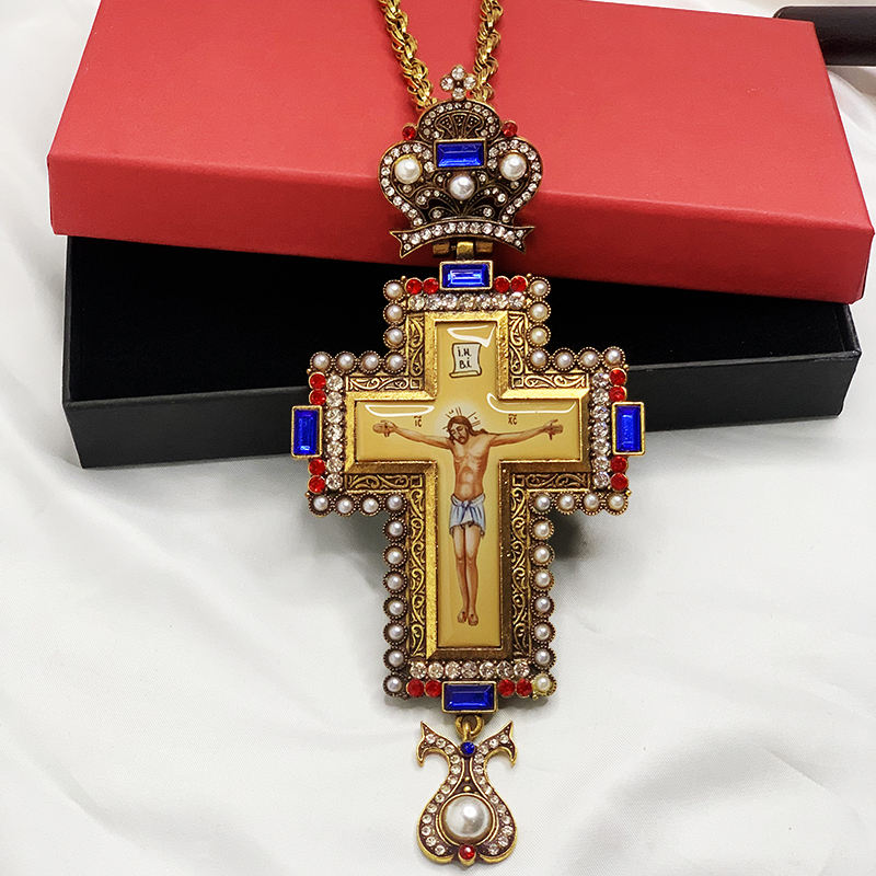 La fábrica vende collar cruzado de pecho de obispo ortodoxo griego de gran tamaño CADENA DE Metal chapada gruesa collares colgantes de moda oriental