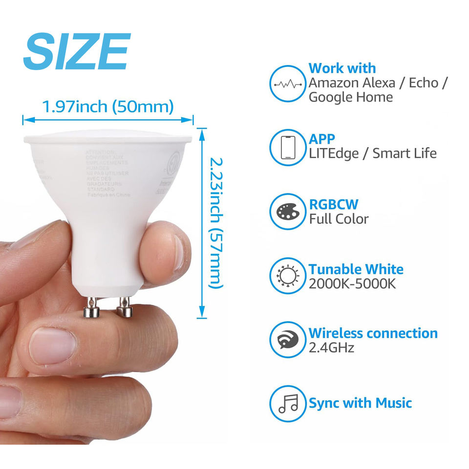 Bombilla LED Inteligente GU10 de Fábrica WiFi 5W RGBW Control por App Tuya Compatible con Alexa y Google Assistant para Iluminación del Hogar