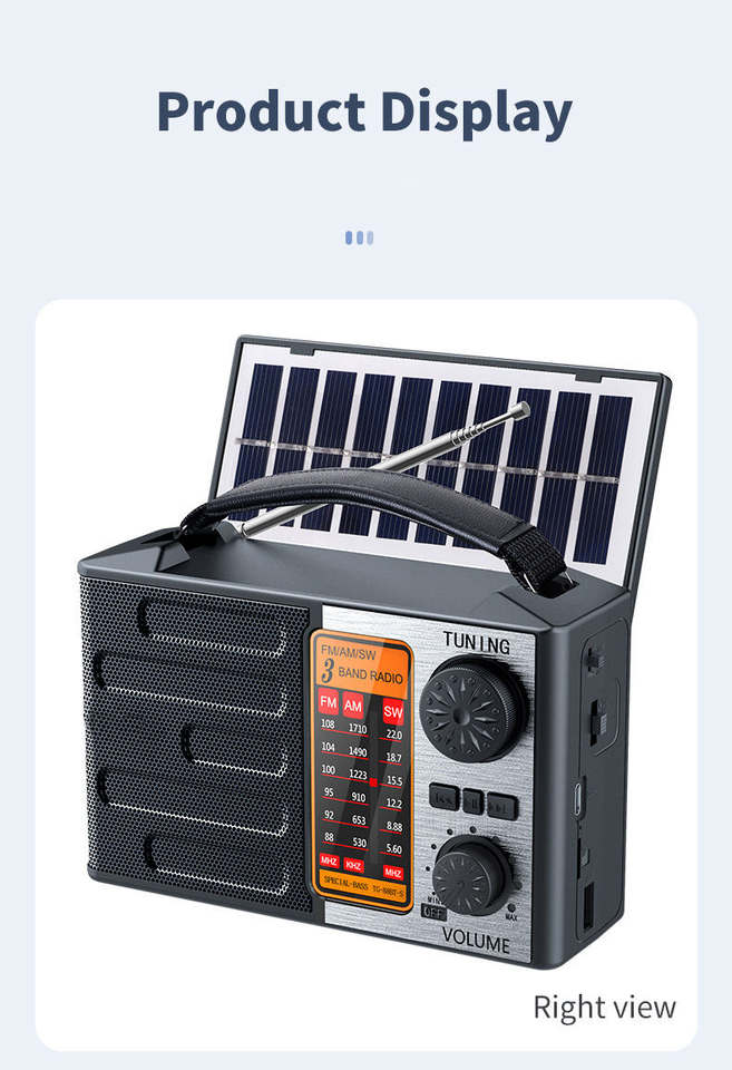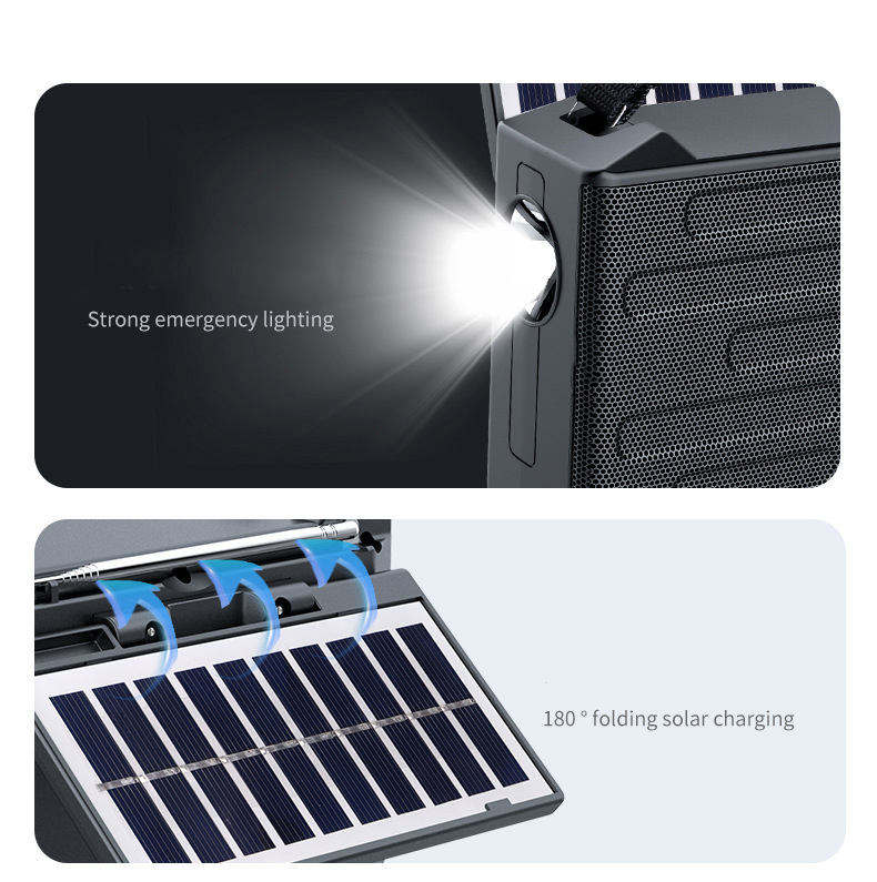 Radio Solar de Fábrica con Bluetooth 5.0, AM/FM/SW, 3 Bandas, Automática, 162.2×105.8×76mm, 500g, Carga Solar, Linterna, Radio de Audio para Exteriores y Hogar
