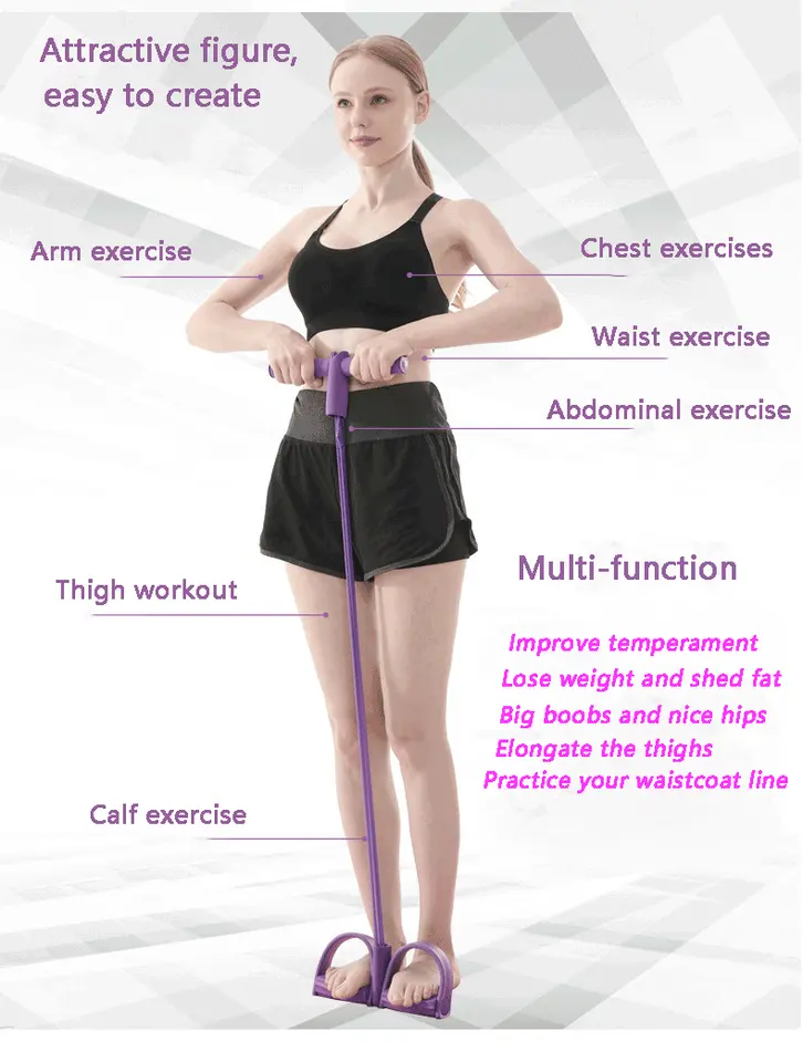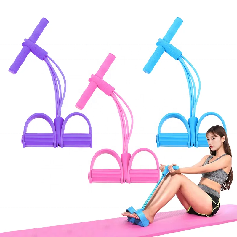 Banda de resistencia multifunción de fuente de fábrica, cuerda elástica para sentarse de 4 tubos con Pedal de pie, equipo de ejercitador Abdominal Fitn