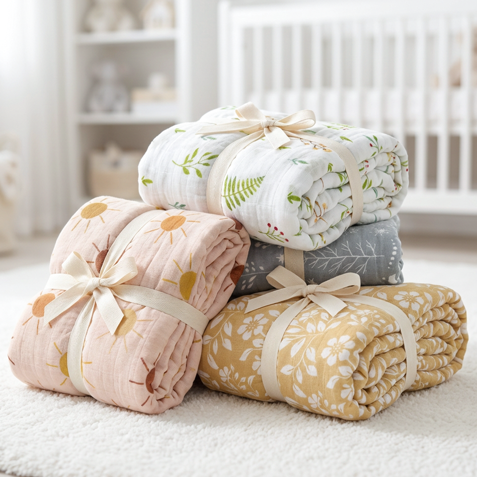 Proveedor de Fábrica, Edredón de Muselina para Bebé con Diseño Personalizado, Transpirable, Hipoalergénico, Manta de Muselina Multicapa para Dormir