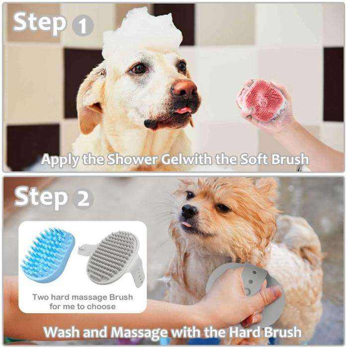 Proveedor de fábrica Cepillo de limpieza de masaje de baño de cerdas de silicona suave para mascotas con dispensador de jabón y champú
