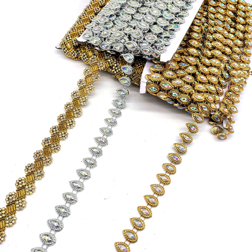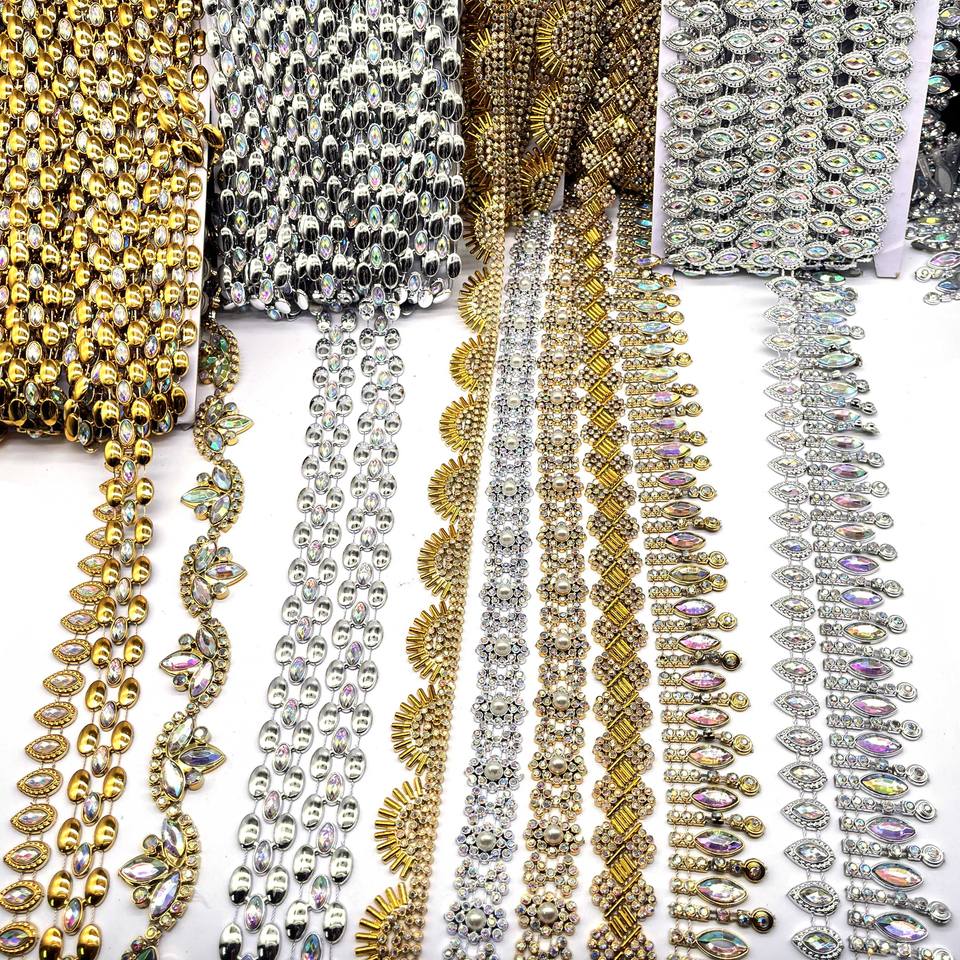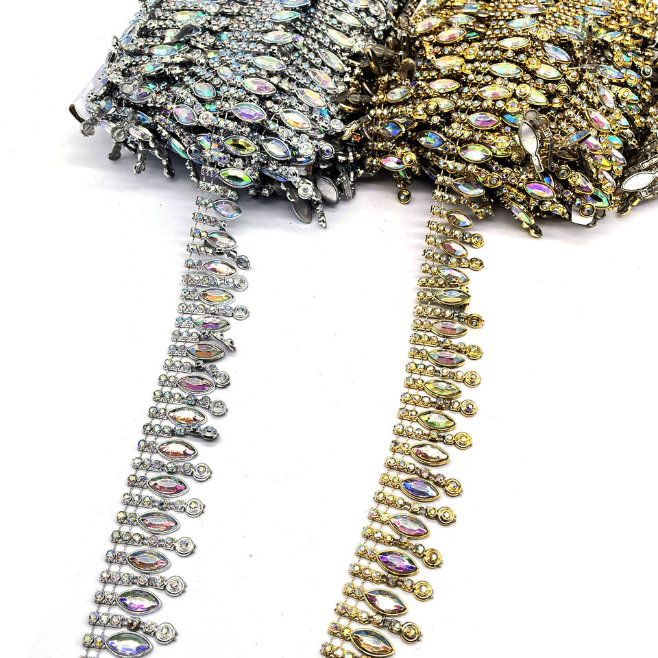 Adorno de Pedrería Acrílica de Plástico Color AB Dorado y Plateado para Coser en Zapatos, Ropa y Bolsos