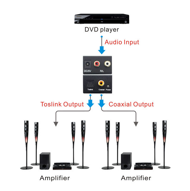 Caja Convertidora de Audio toslink óptico, analógica, RCA a Digital, de alta calidad, suministro de fábrica
