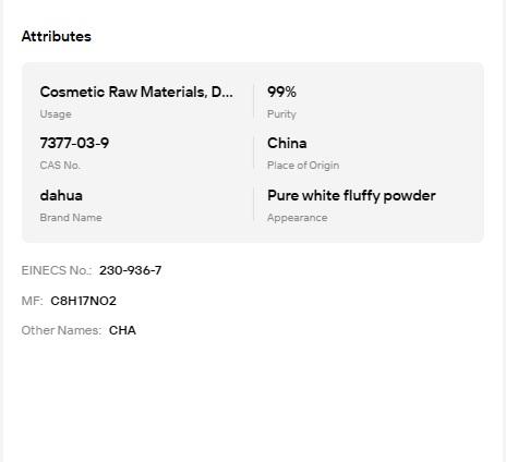 Ácido Caprilhidroxiámico CHA CAS 7377-03-9, Materia Prima Cosmética, Conservante, Suministro de Fábrica
