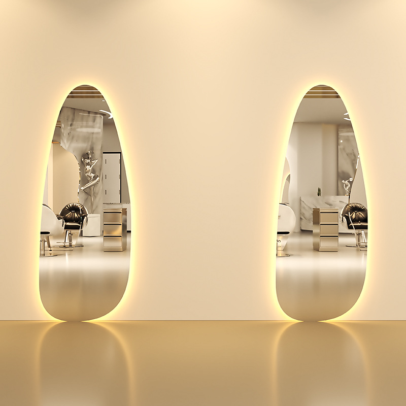 Espejo LED de Estilo Ondulado Irregular Grande Personalizable de Fábrica con Luz Tricolor para Uso en Peluquerías y Salones