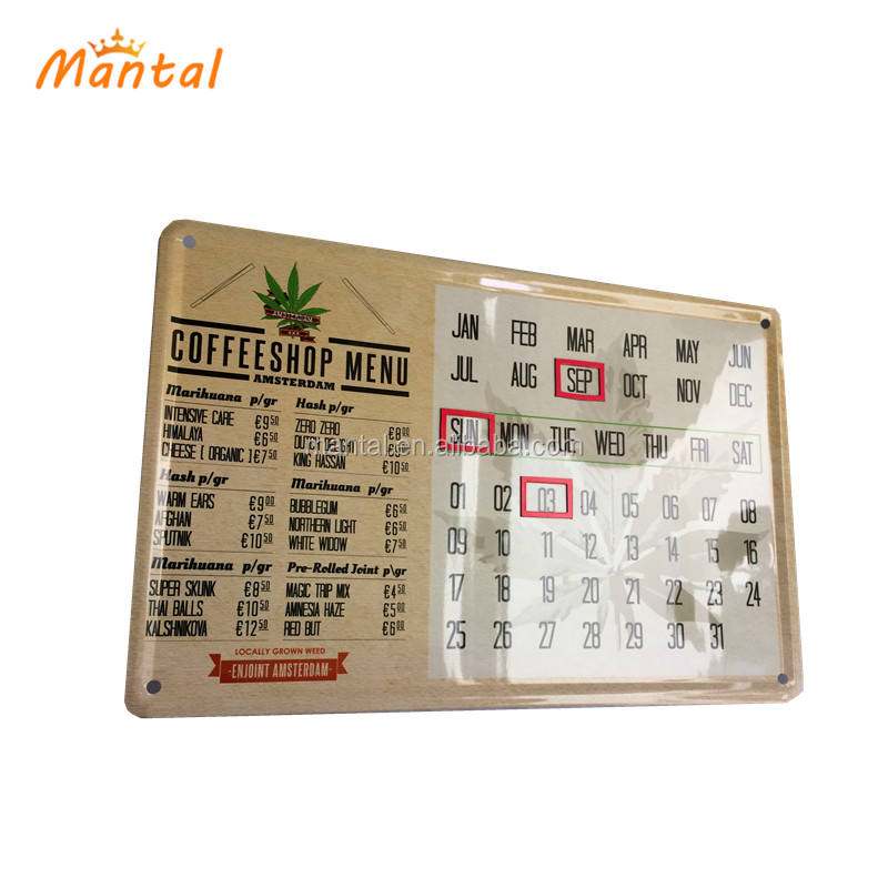 Suministro de fábrica, calendario Popular personalizado, cartel de estaño, número en relieve, advertencia, placa de aluminio, decoración de pared