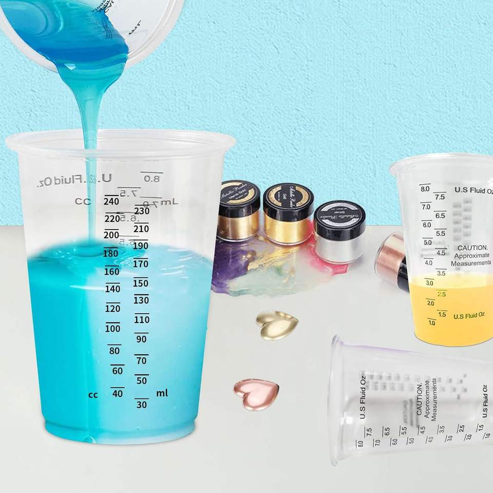 Suministro de fábrica, tazas medidoras de plástico desechables multiusos de grado alimenticio, tazas medidoras para mezclar resina epoxi para hornear